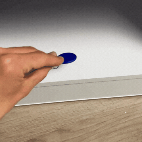 • Halte die Karte auf den Deckel bis ein Piepton ertönt, um das Schloss sofort zu öffnen.