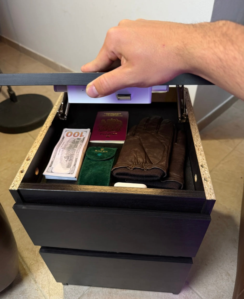 Im PHANTOM Nachttisch finden all deine wichtigen Wertgegenstände problemlos Platz - egal ob Dokumente, Uhren oder Bargeld!