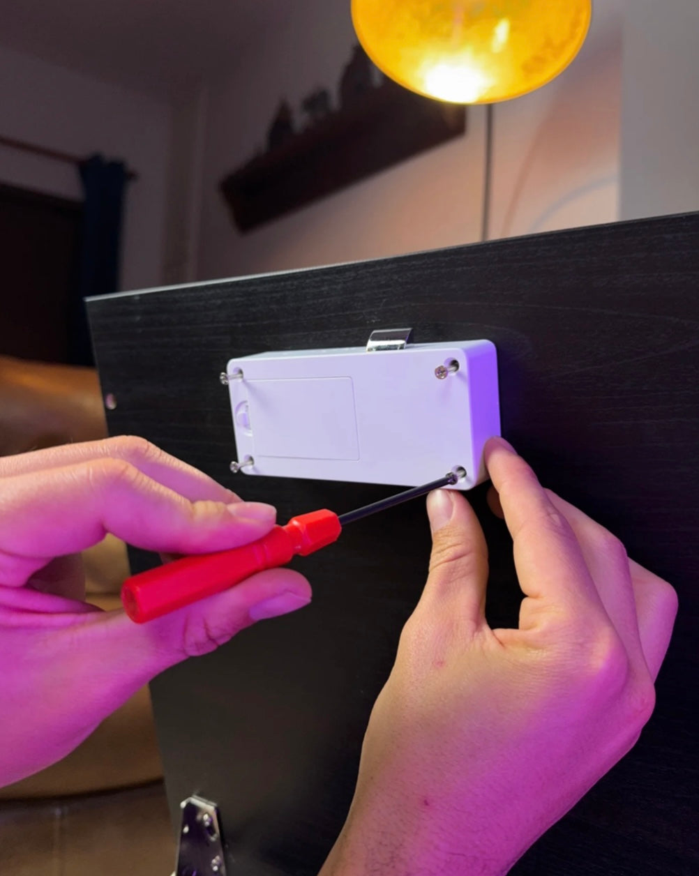 • Befestige das RFID-Schloss mithilfe der Vorlage und der beiliegenden Schrauben.